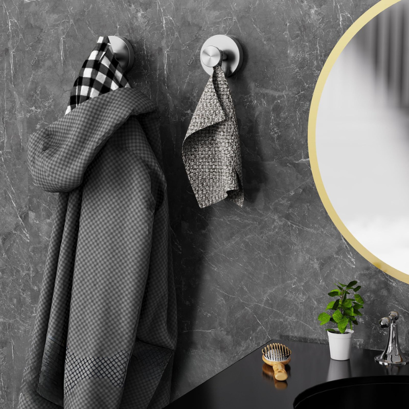 Die haken haften auch in feuchten räumen. Ideal für handtücher, bademäntel oder duschzubehör.