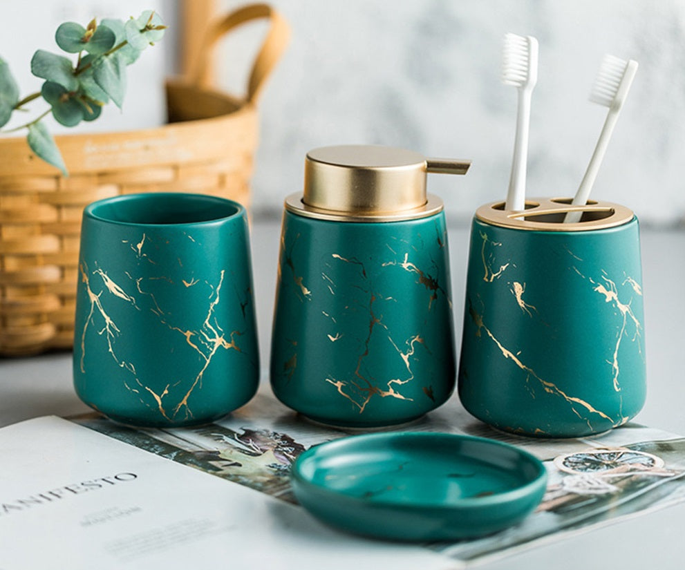 4 Teilig; Seifenspender, Zahnbürstenhalter, Becher und Seifenschale
